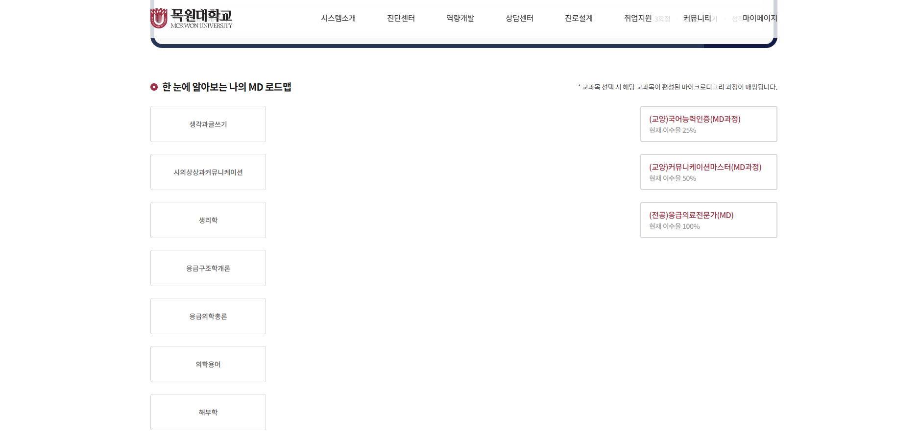 요청사항 : 화면 내 최하단에 한 눈에 알아보는 나의 MD 로드맵 이라는 항목이 있습니다.
