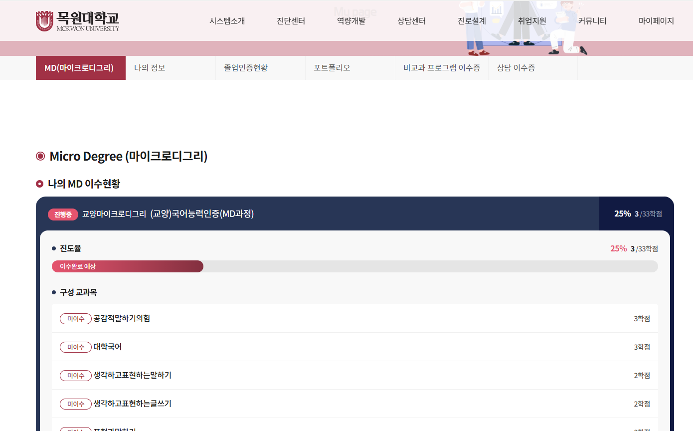 Micro Degree(마이크로디그리) 서브타이틀 위쪽으로 여백 차이가 발생하고 있습니다.