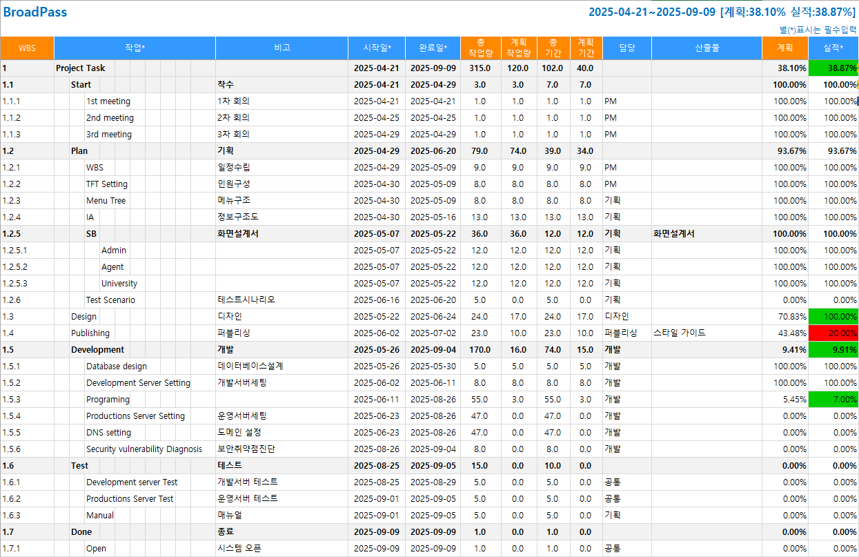 1.퍼블리싱 진척율 상으로는 약 7% 지연율이 잡히지만 전체 공수에 영향없음