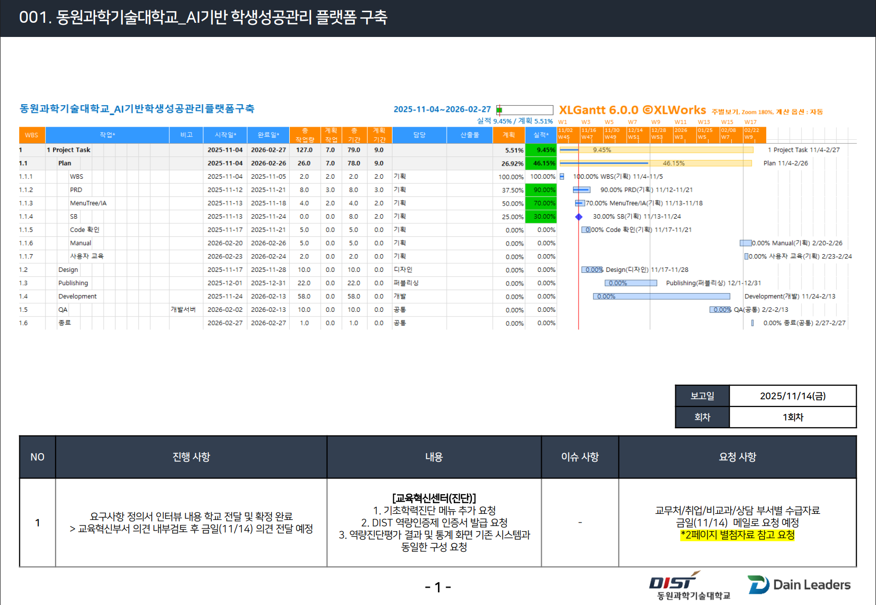 2.요구사항정의 회의 관련 내부 논의 후 학교측 안내 및 PRD 확정 예정(11/18까지 완료 예정)