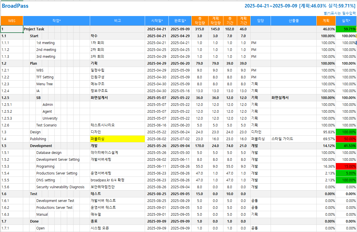 1.퍼블리싱 진척율 상으로는 약 7% 지연율이 잡히지만 전체 공수에 영향없음